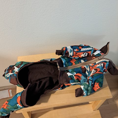 Siistissä kunnossa. Ollut tanskandogilla. Fleece-kangasta.