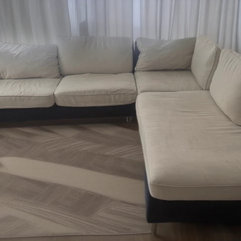 Koristetyynyt ei kuulu kauppaan, kyseessä koiratalous ja vain nouto. Ennen kauppaa voidaan sovitusti pestä ja imuroida koko sohva tekstiilipesurilla.