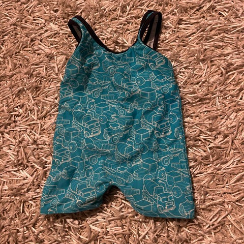 Myydään erinomaisessa kunnossa oleva vauvan uimapuku, koko 74 cm. Edessä on vetoketju. Taustapuoli on yksivärinen sininen (kuten hihat).