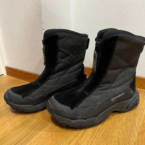 Icebug nastakengät malli Boda, joka on muunnos klassisesta curling-kengästä. Sisäpinta on pehmeä ja miellyttävä ja pohjassa on 17 karbiditeräsnastaa.