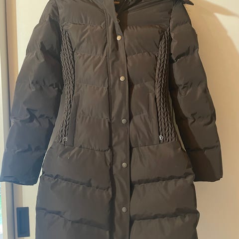 Tum.sin. lämmin takki. Takissa on pitkä malli, vetoketju- ja takana napitus, sekä sivuilla joustavat osiot istuvuuden parantamiseksi. Sisäpuolella on pehmeä vuori. Takki soveltuu kylmiin säihin ja tarjoaa suojaa tuulelta ja kylmältä. Koko 12. Ollut kaksi kertaa päällä.
