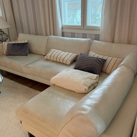 Siisti kuvan kulmasohva myytävänä. Keinonahka siisti eikä ole hajuja. Pieniä käytön jälkiä löytyy. Jalat irroitettavat. Kulman saa irroitettava.