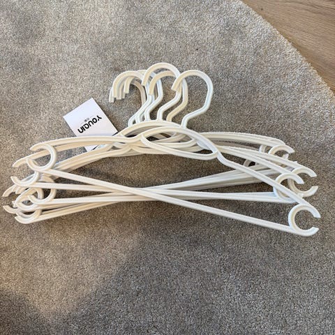 Vaatekaappi järjestykseen henkareilla.
