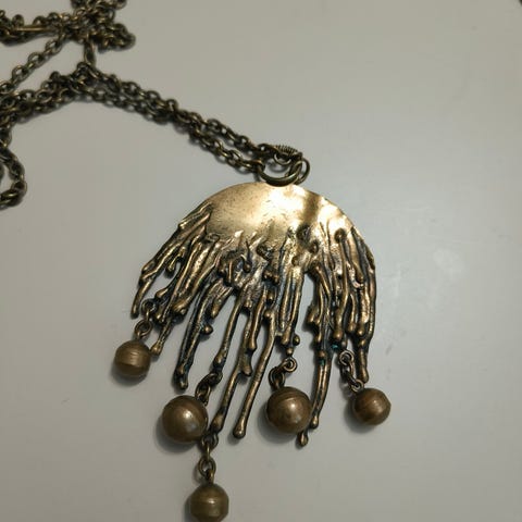 Sarpaneva pronssinen kaulakoru. Korun halkaisija n. 3 cm. Ketjun pituus 30 cm.