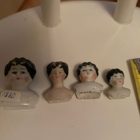 Myydään vanhoja antiikki nukkeja, joilla on posliinista pää. Pitkä helmaisella on myös kädet posliinia, mutta vartalo ja jalat kangasta. Lyhyt hameisella vartalo, kädet ja jalat jotain massaa, mutta pää posliinia. Kunto kuvien mukainen, päät ja raajat ehyitä. Pituus n.18-20 cm. Hinta 85€/ kpl. Nouto Kokkola/ Pietarsaari tai postitus ostajan laskuun, postin s-paketti 8,90€.