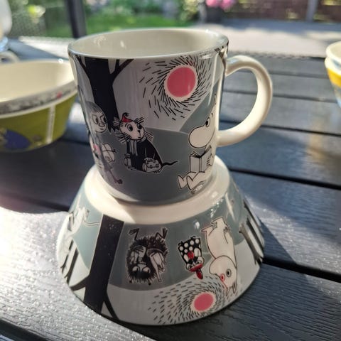 Uudet, käyttämättömät muumi muki ja muumi lautanen Seikkailu muutto.