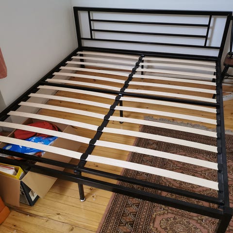 Myydään laadukas, puurunkoinen sängynrunko ja samaan sarjaan kuuluva yöpöytä.