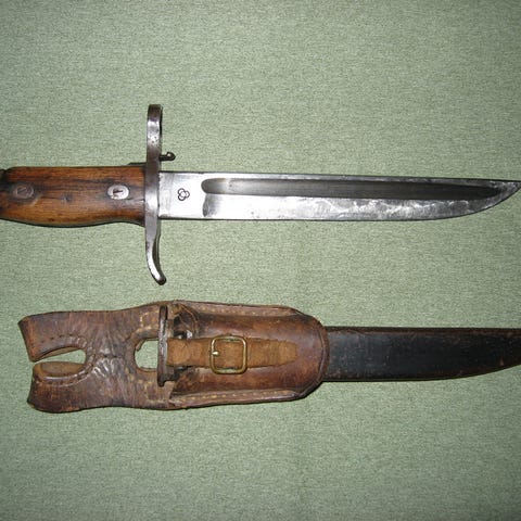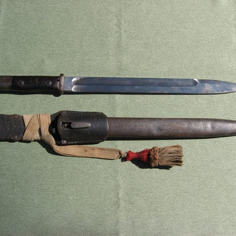Norjalainen SLG M/57 M1 Garand pistin. Pistin on alun perin Saksalainen 98k III pistin. Valmistaja: Dürkopp-Werke, Bielefeld. Vuosileima 37. Pistin on modifioitu Vinghøgs Mekaniske Verksted AS,n toimesta Norjalaisten käyttämään M1 Garandiin. Terä ok, ei teroituksen jälkeä, sinistys tallessa. Kahvalevyt ok, vähäistä käytön jälkeä. Lukitusnappi toimii. Tuppi ok, ei lommoja. Tupen valmistaja: Richard Abraham Herder, Solingen. Vuosileima 38. Tuppi myös modifioitu muuttamalla kannikeosa USA / Nato tyyppiseksi. Pistimessä ajan patinaa ja vähäisiä käytön jälkiä.