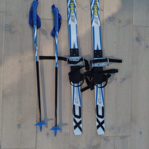 Myydään kahdet muutaman kerran käytetyt, uudenveroiset, lasten sukset ja sauvat.