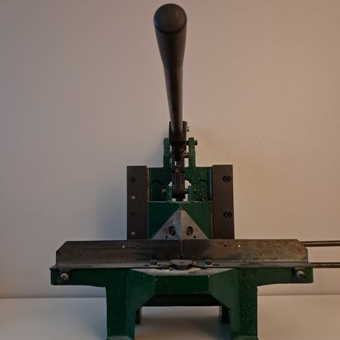 Orkegill metallileikkuri, jossa on mitta-asteikko ja vahva metallirakenne. Laite soveltuu metallilevyjen leikkaamiseen tarkasti. Käyttö vaatii manuaalista voimaa ja sopii työpajaympäristöön.