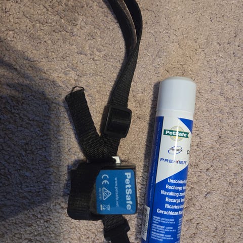 Petsafe haukunestopanta. Ollut käytössä pienehköllä kääpiöpinserillä. Nyt useamman vuoden käyttämättömänä. Testattu toimivaksi ennen myyntiin laittoa. Mukaan täyttöpullo hajutonta suihketta pantaan ja avaamaton patteripaketti. Myös pannan sisällä olevassa patterissa on virtaa jäljellä. Myynnissä myös muutama lisätäyttöpullo pannan suihketta erikseen, katso muut ilmoitukseni.