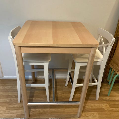 Pöytäryhmä yhdessä 100e. Voidaan myydä myös erikseen, tuolit 2 kpl 90e ja pöytä 30e. Vain nouto Helsingin Pitäjänmäestä. Maksu Mobilepay, tilisiirto tai käteinen.