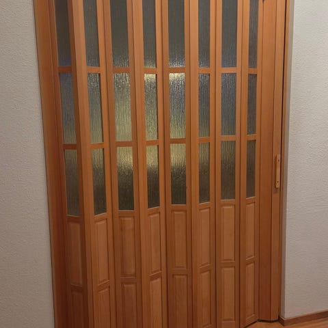 Ollut portaiden alapuolisen vaatehuoneen ovena. Siisti ja ehjäkuntoinen, joskin mekanismi paikoin hieman tiukahko. Alumiininen kiinnityskisko mukaan.
