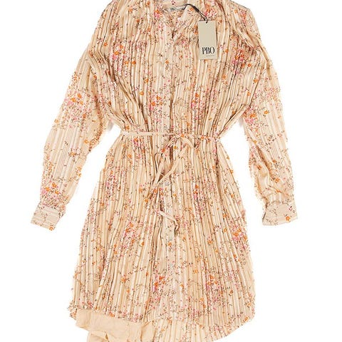 PBOn käyttämätön (laput kiinnni) kesä-/juhlamekko. Ihanaa laskeutuvaa materiaalia ja kaunis kuvio. Väri ruskea ja hentovaaleanpunainen/puuteri.