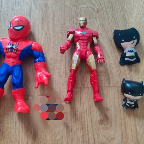 Spider-Man (n. 30cm) ja Hulk (n. 16cm) hahmot. Yhteensä 10e tai erikseen Spider-man 8e ja Hulk 4e