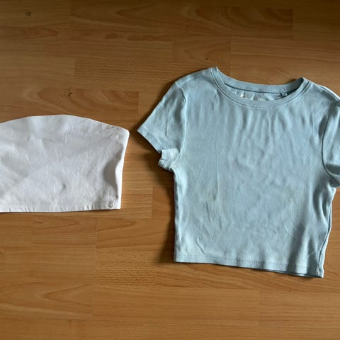 Setti, johon kuuluu kolme toppia ja paita. Topissa koko S ja paidassa M, mutta on enemmän kokoa S.