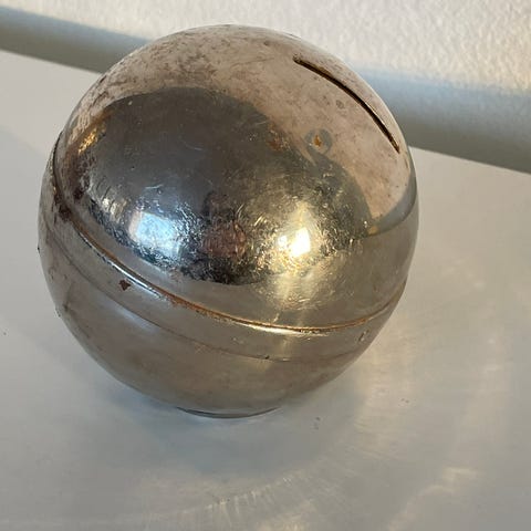 Laitilan Säästöpankin säästölipas kahvalla, rautaa. Pit. 8,5, lev. 4, kork. 5,5 cm. Nouto tai postitus, p-kulut ostajalle.