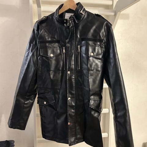 Myydään miesten musta keinonahkatakki, koko M.