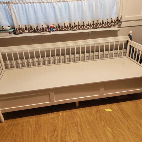 Annetaan sisätiloissa säilytetty levitettävä sivustavedettävä puusohva.