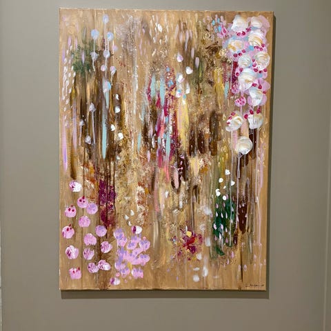 Asta Vehviläisen tekemän maalaus. Halkaisija 80cm. Haku Kiulukangas.