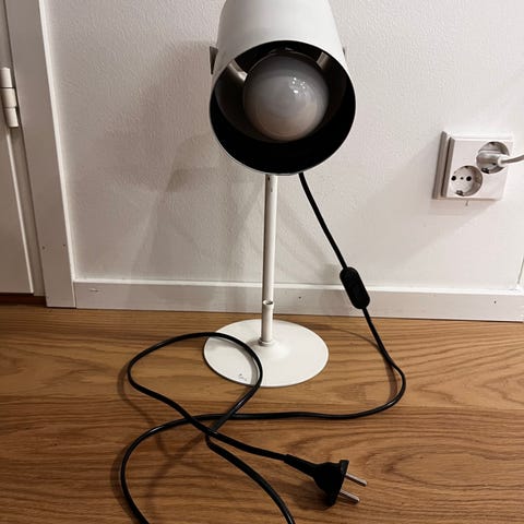 Täysin alkuperäiskuntoinen, puurunkoinen pöytävalaisin 1960-luvulta. Varjostin sisäpuolelta muovitettua kangasta. Ehjä, puhdas ja toimiva. Virtajohdolla mittaa n. 2,5 metriä, johdon päässä alkuperäinen maadoittamaton pistoke. Valaisimen korkeus 32 cm, varjostimen halkaisija 19 cm. Valaisin Tampereella, lähetyskulut lisätään. Kysäise!