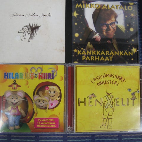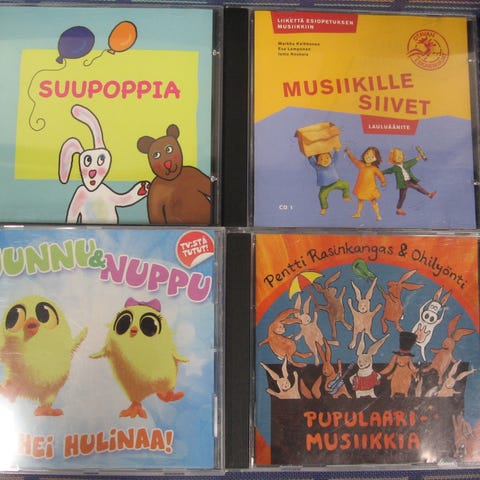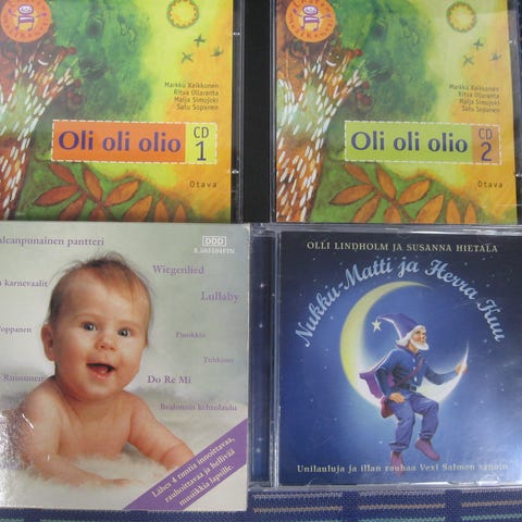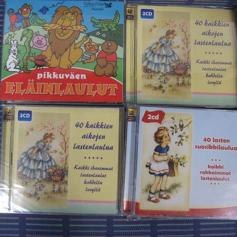 Myydään lastenlaulu cd-levyjä 3,00 euron kappale. Kaikki cd:t kuunneltu ja todettu toimiviksi. Cd:ssä voi olla naarmuja & kansipapereissa jälkiä/omistuskirjoituksia, mutta cd-kotelot ovat ehjät. Postituskulut ostajalle ja noutokin sovittavissa.