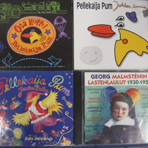 Myydään lastenlaulu cd-levyjä 2,00 euron kappale. Kaikki cd:t kuunneltu ja todettu toimiviksi. Cd:ssä voi olla naarmuja & kansipapereissa jälkiä/omistuskirjoituksia, mutta cd-kotelot ovat ehjät. Postituskulut ostajalle ja noutokin sovittavissa.