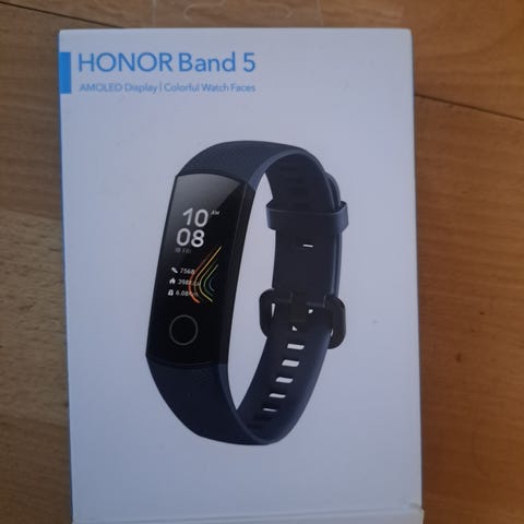 Honor Watch 5 älykello valkoisella rannekkeella. Mukana lataustelakka. Sopii päivittäiseen käyttöön ja urheiluun.