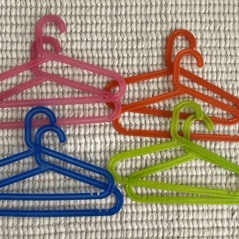 Pieniä henkareita on kolme muovista ja yhdeksän puista.