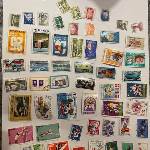 Postimerkkejä kokoelma eri maista ja aiheista