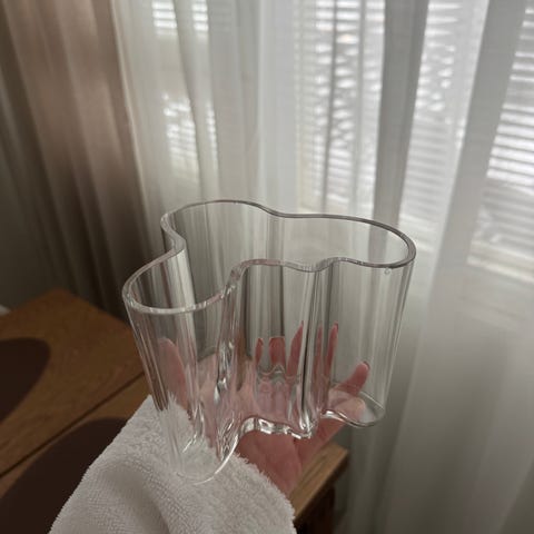 Kirkas Aalto maljakko, korkeus 16 cm. Huom alhaalla kaiverrus ”Seinäjoen kaupunki”. Nouto Sörnäisistä.