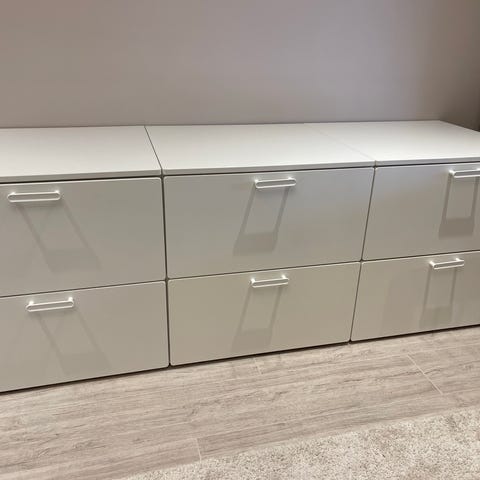 2kpl Småstad kaappeja, joissa toisessa hyllyt ja toisessa tanko. Alla laatikot.