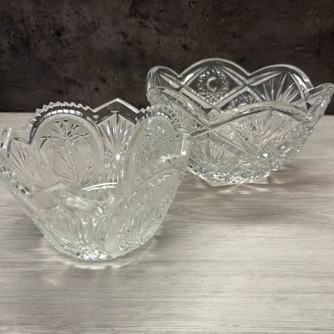 Kaunis kristallikulho, lev. 14,5, kork. 7,5 cm. Mieluiten nouto.