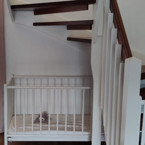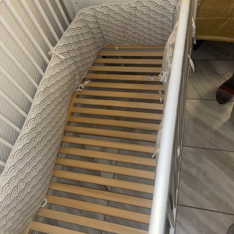 Brion pinnasänky (tarkempi malli ei tiedossa), jonka koko on 127 cm pituus (120 cm sisäosa), 66 cm leveys, 87 cm korkeus. Sängyn puupinnoissa näkyy joitain käytön jälkiä. Sen vihreä patja on aivan käyttökelpoinen. Sängyn kokoaminen on yksinkertaista ja osat saa irti, joten se mahtuu pienempään tilaan kuljetuksen ajaksi. Sängyn saa hakea 42 eurolla.