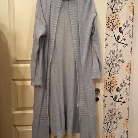 Ril’s vaaleansininen neuletakki käyttämättömänä. Mitat; kainalo-kainalo 48cm, edestä kauluksesta helmaan 49cm, takaa kauluksesta helmaan 60cm, kainalo-hihansuu 49cm. Materiaali 64% lyocell, 15 % silkki 15% polyamidi, 5% elastaani, joustaa. Koko L, kokeiltu vain päälle, uusi. Kuvassa oikealla.