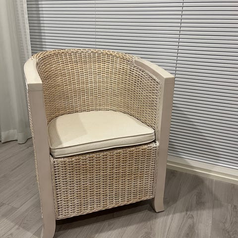 Myydään vanha valkoinen korituoli, maalipinnassa ajan mukanaan tuomaa patinaa. Ehjä.