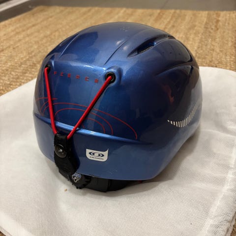 Kaksi kautta laskettu Salomonin laskettelukypärä. Max 55cm päänympärys. Takana säätöpyörä. Hyväkuntoiset pehmusteet. Kuoressa muutama naarmu. Vain noutona.