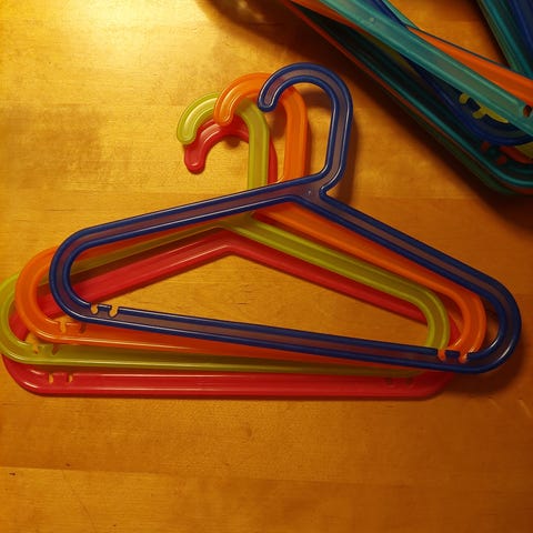 Lasten henkareita, muovisia ja puisia. Noin 30 kpl.