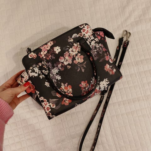 Mango valkoinen laukku mustilla olkahihnoilla, kuin uusi