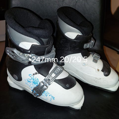 Salomon lasten laskettelumonot, sisämitta 20 cm ja ulkomitta 247 mm.