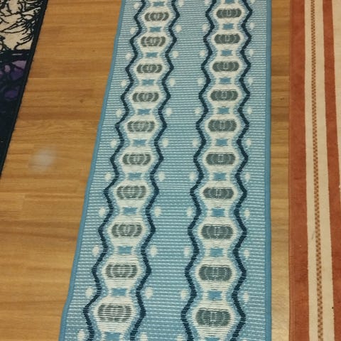 Itse kudottu, käytetty, hyväkuntoinen pöytäliina. Koko 135cm*120cm.