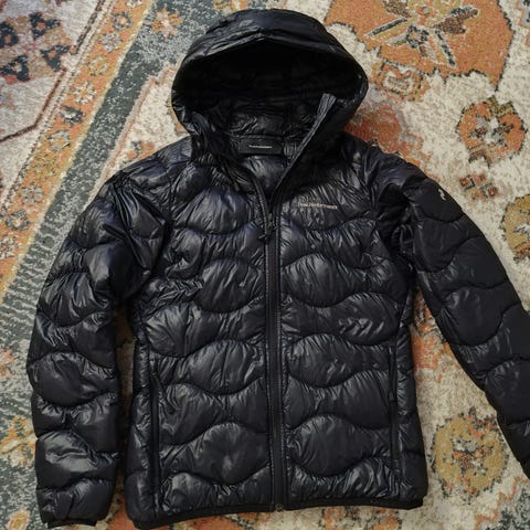 Peak Performance Helium Down Hood Jacket talvitakki, koko S, musta väri, valmistettu untuvasta. Naisten takki, jossa on huppu ja vetoketjukiinnitys. Soveltuu kylmien säiden käyttöön.