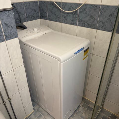Whirpoolin päältä täytettävä pyykin pesukone. Toimii hyvin. Toinen eli vasen reuna ottanut osumaa joskus muutossa ja sen vuoksi hieman tulee ulospäin. Mutta edelleen siis toimii hienosti. Myydään nyt muuton vuoksi, ja uudessa asunnossa pesukone valmiina.
