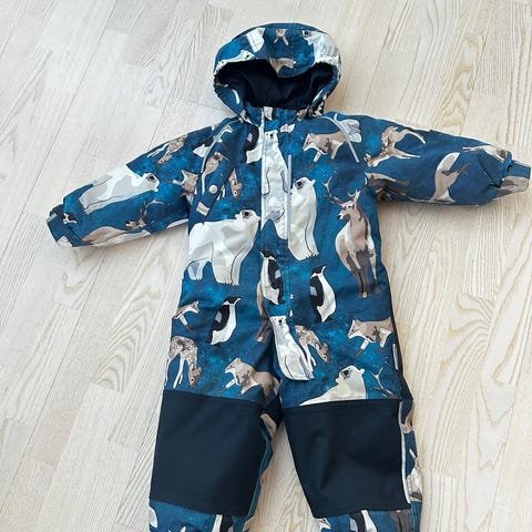 Myydään kuin uusi yhdellä lapsella ollut vähän käytetty lämmin vettä hylkivä talvihaalari. Irroitettava huppu. Kuminauhat lahkeissa.
