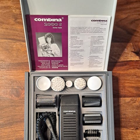 Combina 2000, retro monitoimilaite. Parranajoon, hiesten leikkaukseen, hierontaan.