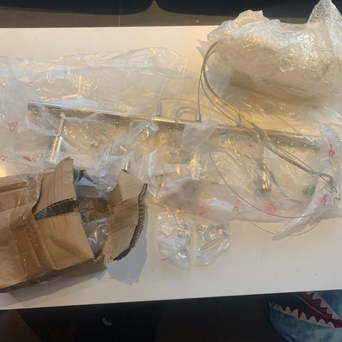 Toimiva riippuvalaisin, jossa on metallirunko ja lasi-/kristallikoristeet. Valaisin on suunniteltu kattokiinnitykseen ja siinä on säädettävä korkeus, n. 61-101,5 cm. Sähköliitäntä ja kiinnitys systeemi näkyvissä kuvassa, sis. pistotulpan. Vain nouto alueelta.