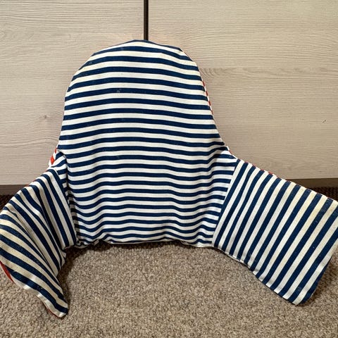 Tori.fi:stä hankittu puinen lasten syöttötuoli.