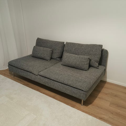 Ikean Söderhamn-sarjan yhden istuttava nojatuoli. Iso selkänojatyyny ja pienempi tyyny mukaan. Metallijalat. Kangas tummanharmaa. Tuoli on itsessään kuin uusi, hyvin vähän istuttu - lähinnä nurkassa vienyt tilaa. Päälliset pestävät ja pesu jää ostajalle. Koiratalous.