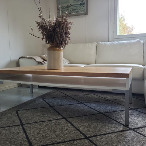 Myydään iso välitasollinen sohvapöytä 130x80x47. Lasin saa helposti nostettua irti puhdistusta varten. Hyväkuntoinen pöytä, jossa muutama hyvin, hyvin pieni elämisen jälki.