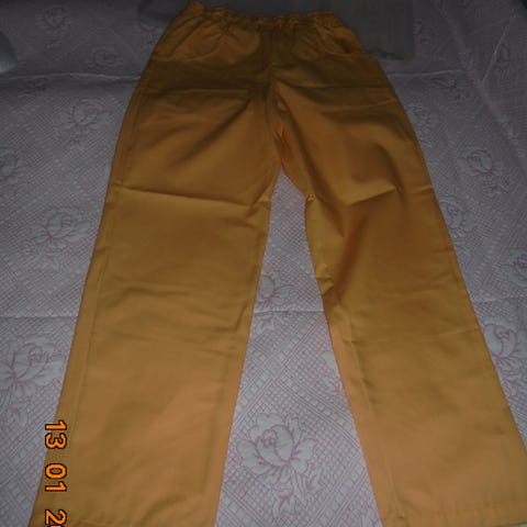 Okrankeltaiset legginsit kissan kuvilla kotimaista käsityötä. Trikoota 92 % puuvillaa, 8 elastaania. Vähän käytetty, hyvässä kunnossa, hieman pesuhaitua.
